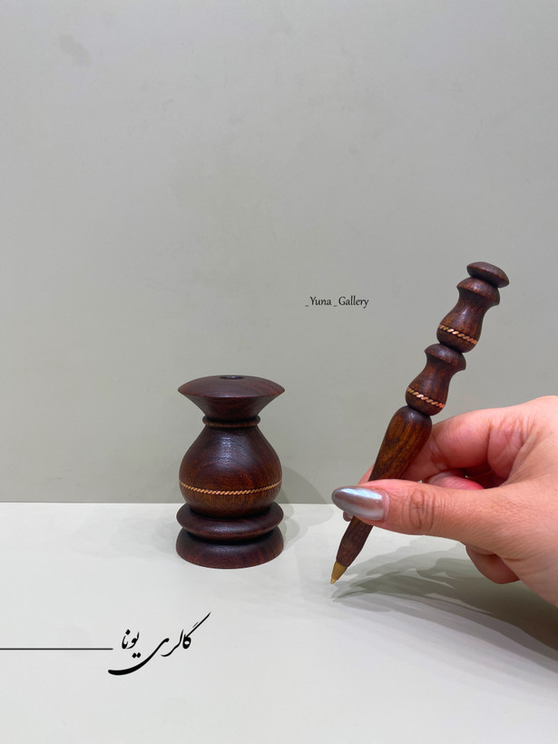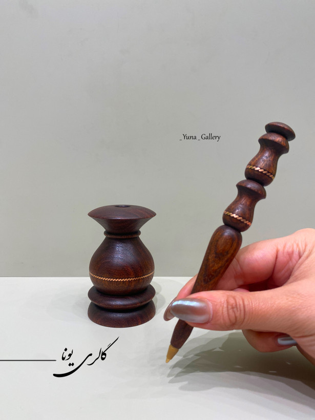 چوب کهور به دلیل بافت متراکم، رنگ عمیق و دوام بالا یکی از محبوبترین چوبها برای ساخت محصولات لوکس است. ترکیب این چوب ارزشمند با نوارهای مسی ظریف جلوهای اصیل و هنری به خودکار میبخشد؛ گویی تکهای از هنر ایرانی را در دست گرفتهاید.